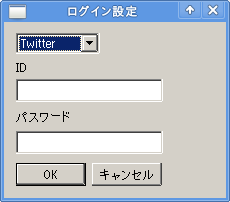 次にログイン設定をします。ドロップダウンリストからTwitterを選択してIDとパスワードを入力します。