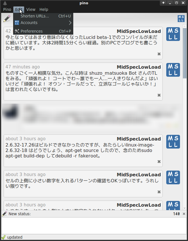 画面はLucidに入っているGwibberと似ています。検索機能や複数のTLを流す機能はありません。